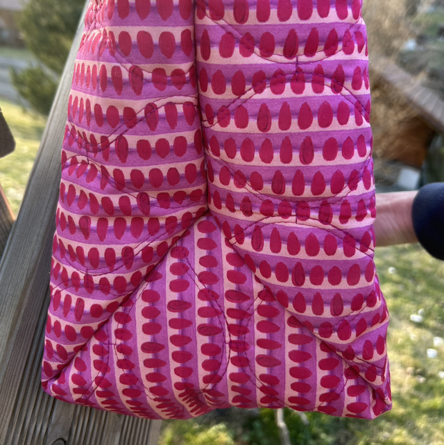 Ce joli sac de plage a été réalisé avec un tissu matelassé en doublé Pour le rendre réversible.
